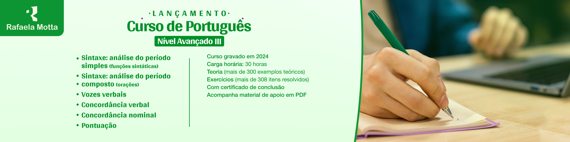 Este curso tem objetivo de desconstruir o método tradicional que é utilizado para a aprendizagem das funções sintáticas, sem fragmentar as áreas da Morfologia, Sintaxe, Fonologia e Semântica. O curso desenvolve métodos de raciocínio diferenciados, como a "Teoria dos Quatro Pilares", "A Teoria dos Três Conjuntos" e "As Dez Ferramentas Para Se Entender Uma Frase". O resultado disto é a total compreensão de cada função sintática.